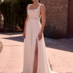 Vermax fra Bianco Evento er en elegant og moderne bryllupskjole med en afslappet men sofistikeret fornemmelse. Den passer perfekt til bruden, der søger simpel skønhed med velgennemtænkte detaljer. Samtidig tilbyder kjolen komfort uden at kompromittere med stilen.