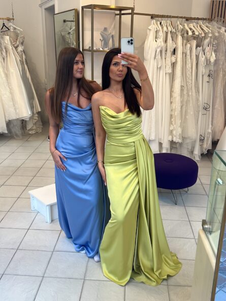 Balklänning 80008 – Draperad långklänning i satin